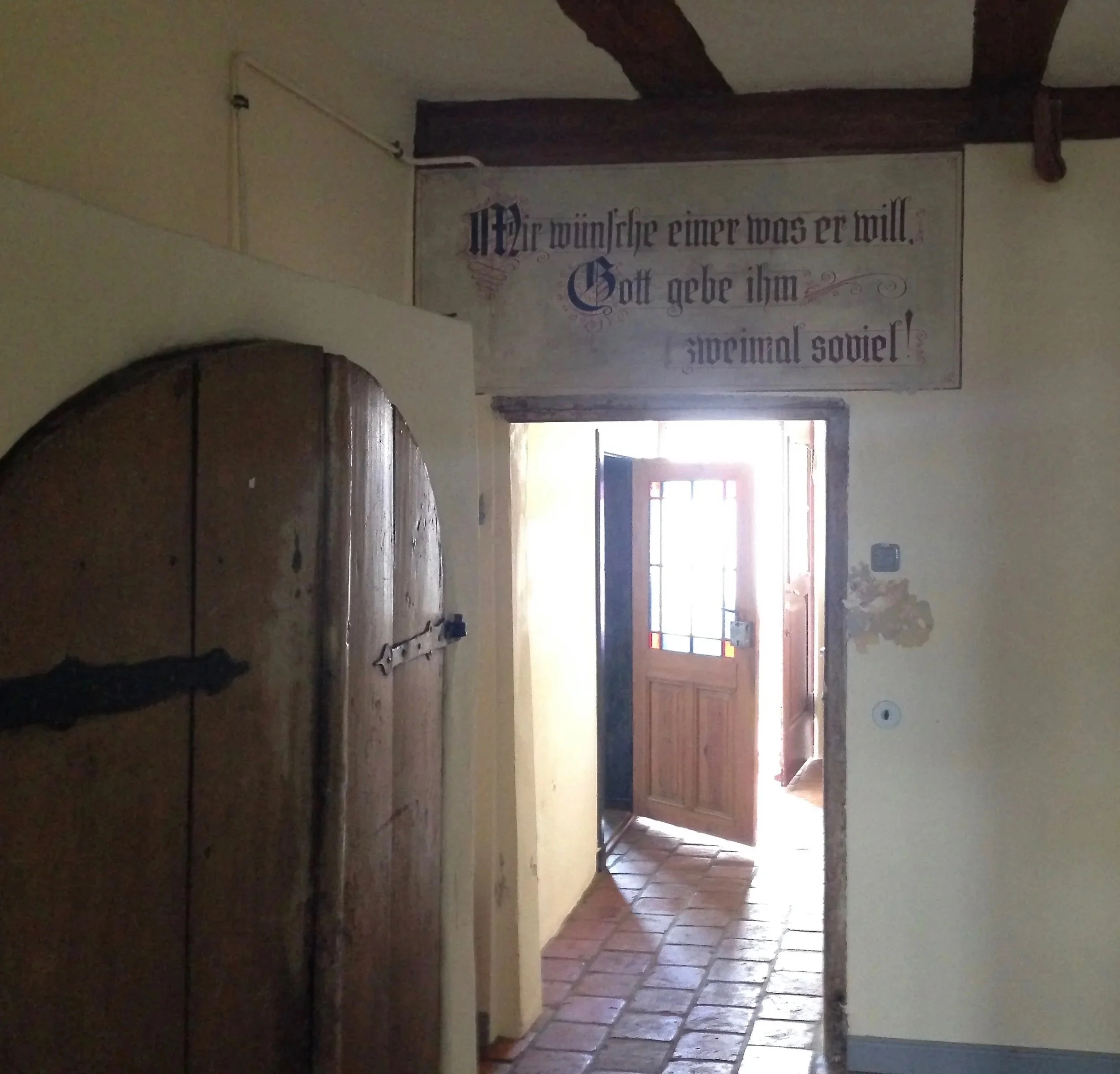 Der feuchte Gewölbekeller verursachte Feuchteschäden an der Fassade: die Farbe war an einigen Stellen abgeplatzt, an der Sicht-Fachwerkseite im Hof waren Putzteile abgefallen und mussten beigearbeitet werden. Die Belüftung des Kellers mit Gurtgewölbe wurde verbessert.